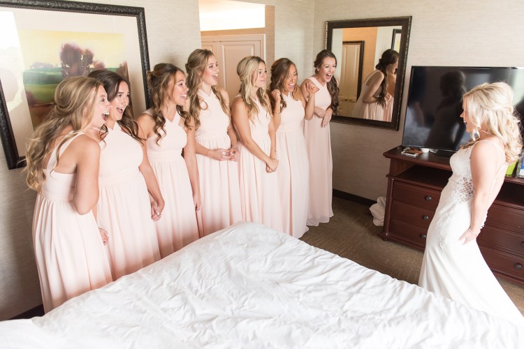 I look over at Macy’s bridesmaids and they are all tears. Seven gorgeous ladies all dressed in beautiful blush dresses that look amazing on every single one of them with hair and makeup on point… and they are crying.