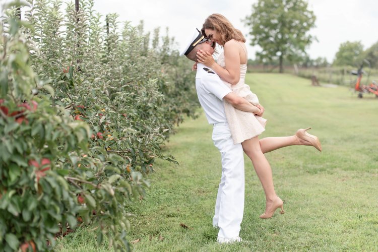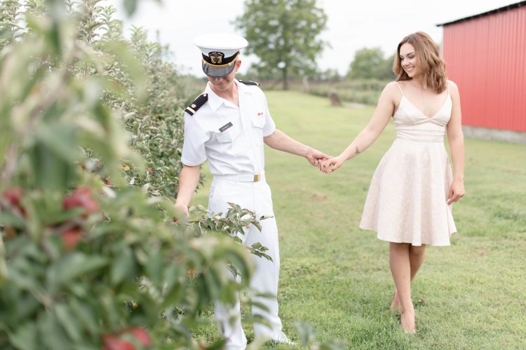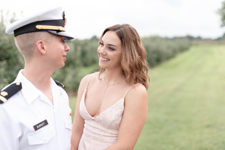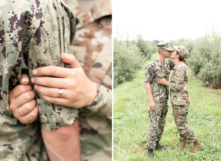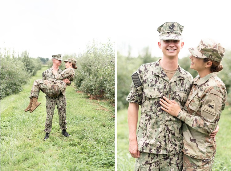 When they arrived we started in the orchard in their respective camos (she’s Army and he’s Navy) and then changed into his summer whites and a playful blush dress.